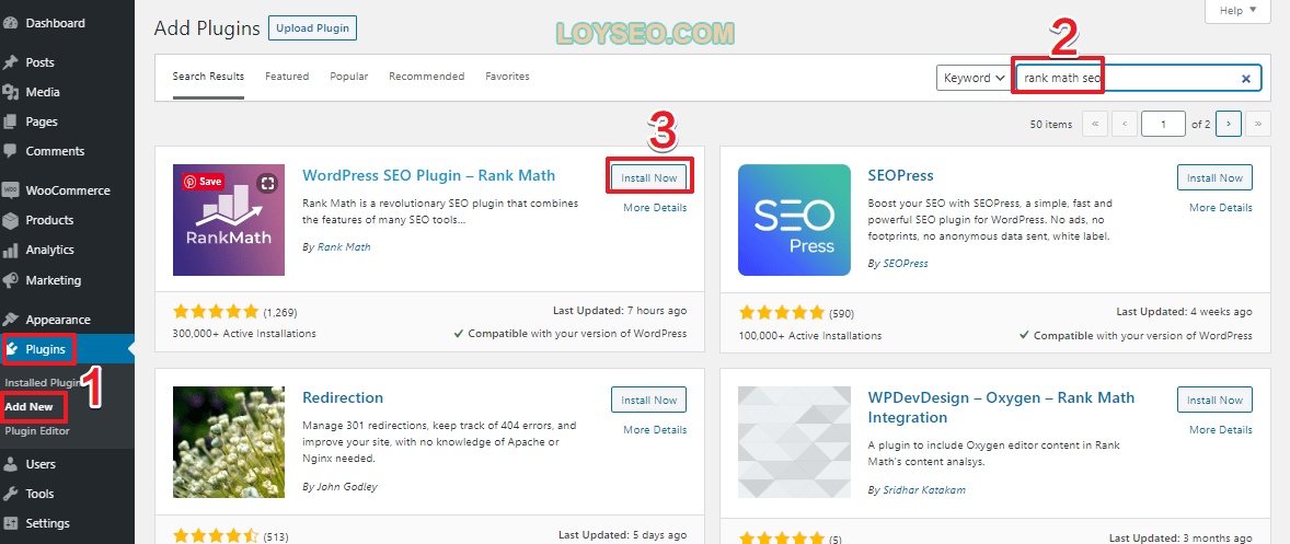前提:已经安装并激活了Rank Math SEO插件,它是免费的,可以在wordpress后台直接搜索插件并安装。