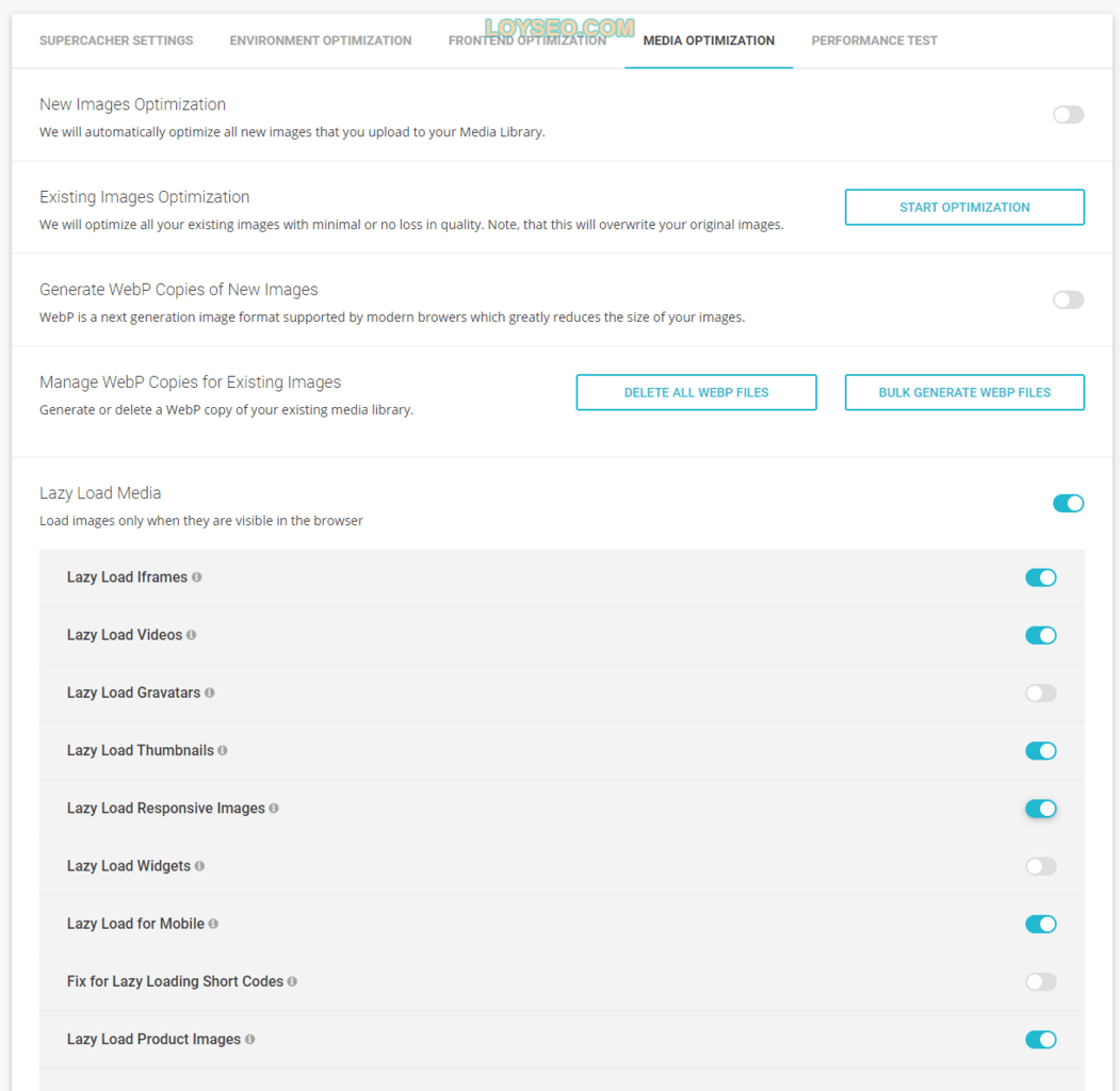 - generate webp copies of new images:给图片生成webp格式,但webp格式并非所有浏览器都支持,所以不建议启用