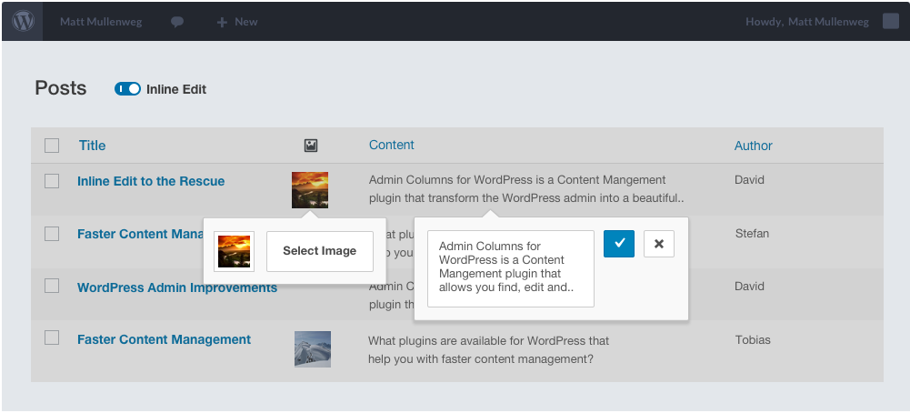 使用Admin Columns Pro,你可以在列表中直接修改內容,而不需要點擊Edit、進入詳情頁修改、提交。
